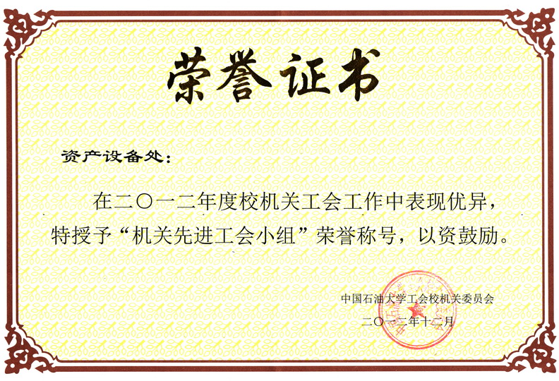 经过校机关各工会小组的自评和联评,我处工会小组被校机关工会授予2012年度“机关先进工会小组”。同时我处杨素琴获学校“工会活动积极分子”荣誉称号,王浩浩获“机关优秀工会干部”荣誉称号,王绍兰获“机关工会活动积极分子” 荣誉称号。