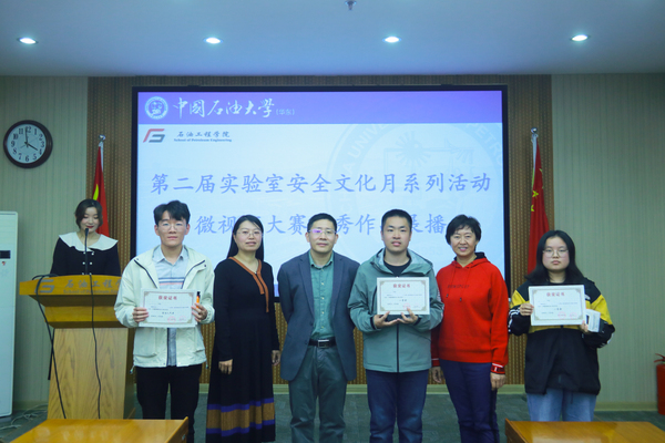 为加强全校师生的实验室安全意识,11月13日,由国有资产和实验室管理处主办,石油工程学院承办的“实验室安全微视频大赛”作品展播活动在工科楼B座347会议室成功举办。本次活动邀请了石油工程学院副院长黄维安老师、石油工程学院实验秘书赵晓燕老师,以及国资处老师出席,入围决赛的10组参赛团队学生参加。