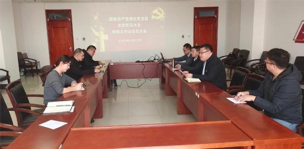 为加强党支部组织建设,2024年3月20日,国有资产管理处党支部在行政楼1021会议室召开支部党员大会,进行集中学习,组织开展民主评议党员,会议由支部书记王浩浩主持。