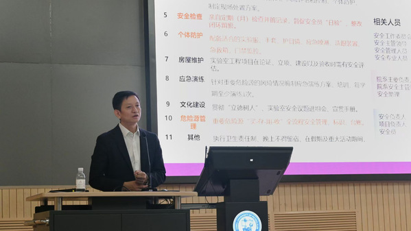 本次实验室安全工作培训会邀请教育部实验室安全现场检查技术专家组组长、中国高等教育学会实验室管理工作分会技术安全部负责人、清华大学实验室管理处副处长艾德生教授为大家带来了题为《高校实验室安全制度体系要点解读》的报告。报告从教育部实验室安全管理系列制度文件的出台背景、主要内容以及内在逻辑等方面,深入剖析了实验室安全管理的关键环节和要点,并结合工作实践提出了下一步加强实验室安全管理工作的方向,为参会者提供了宝贵的经验和建议。
